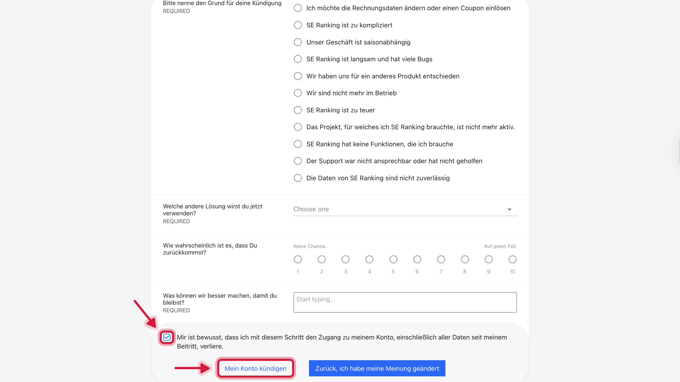 Dein SE Ranking Konto löschen