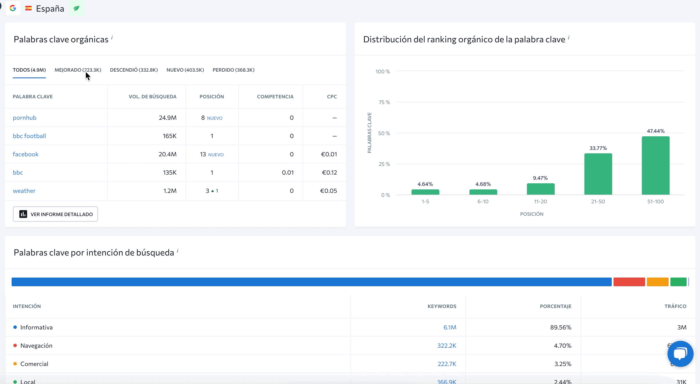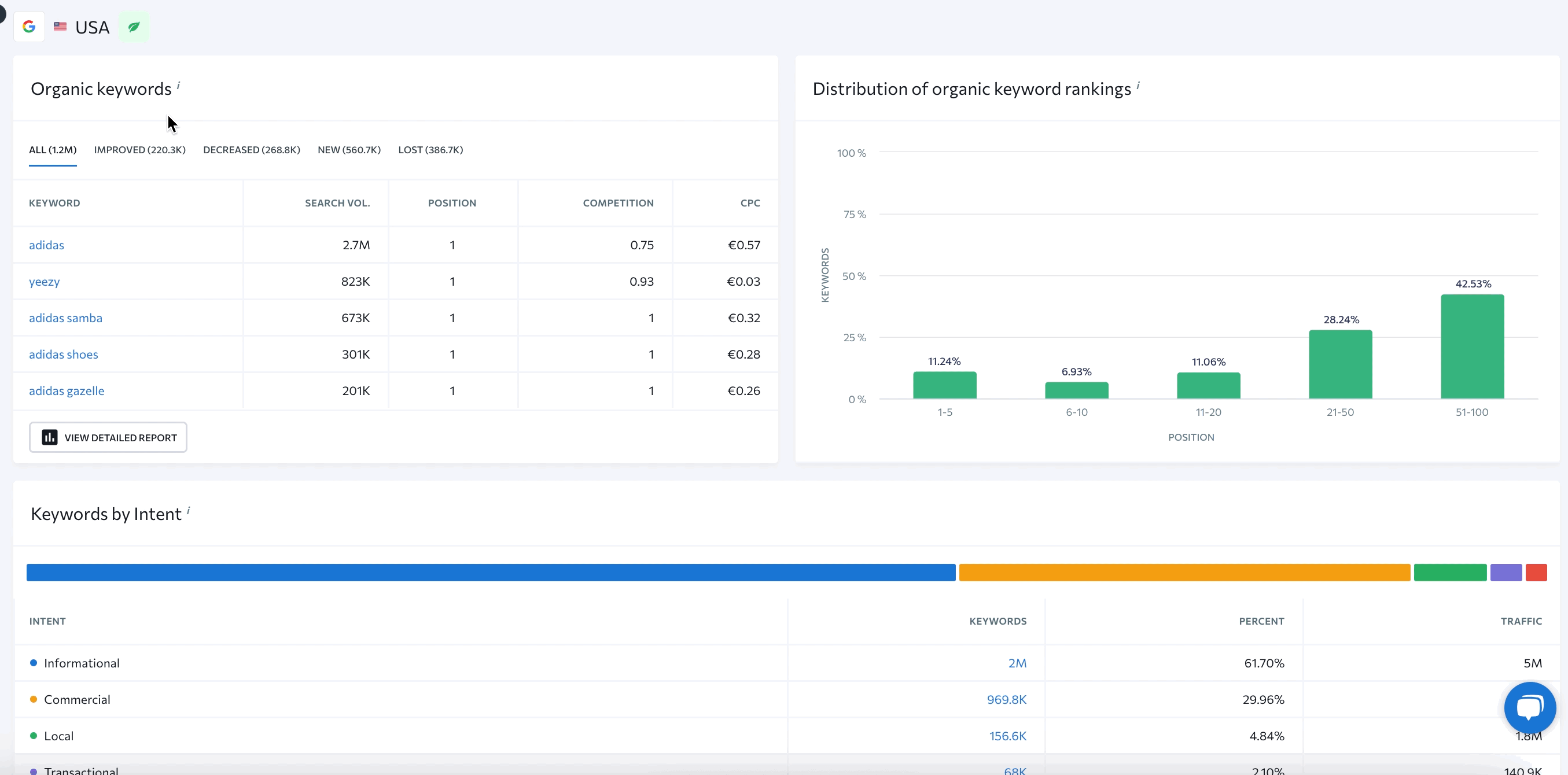 You will also be able to see how many keywords the analyzed website targets in organic and paid search in all available databases while analyzing any domain in a specific country. This will help you evaluate the promotional efforts if the domain is pushing beyond a single country environment and measure how many keywords are being promoted in other countries.