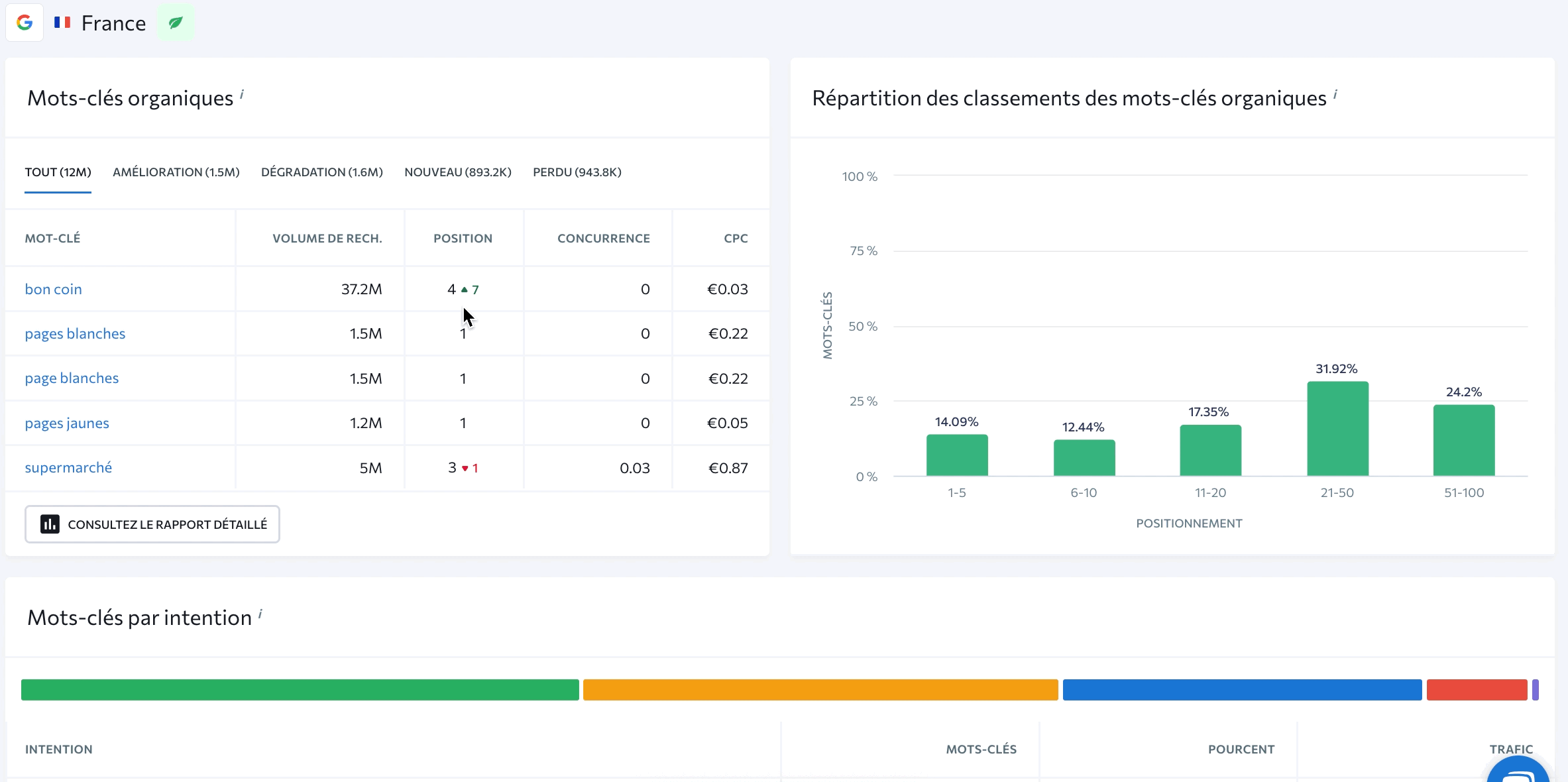 Below the organic parameters overview, you will find information about paid keywords, competitors, their comparison and distribution, and more.