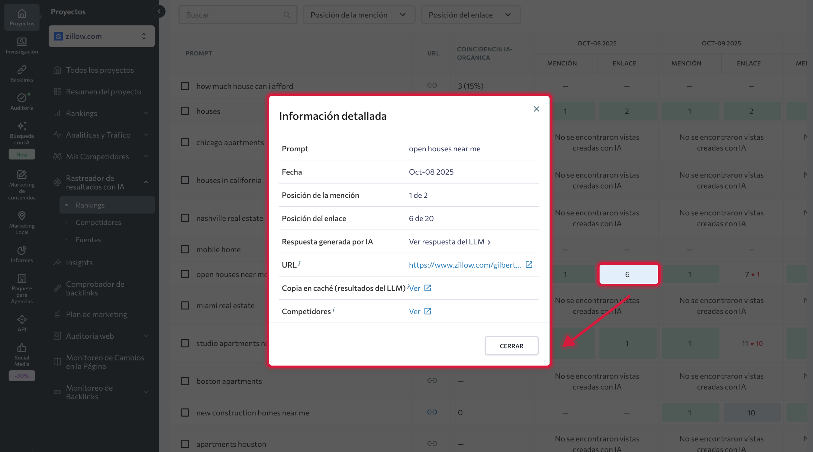 - Vuelve a Proyectos > Rastreador de resultados con IA > Rankings.