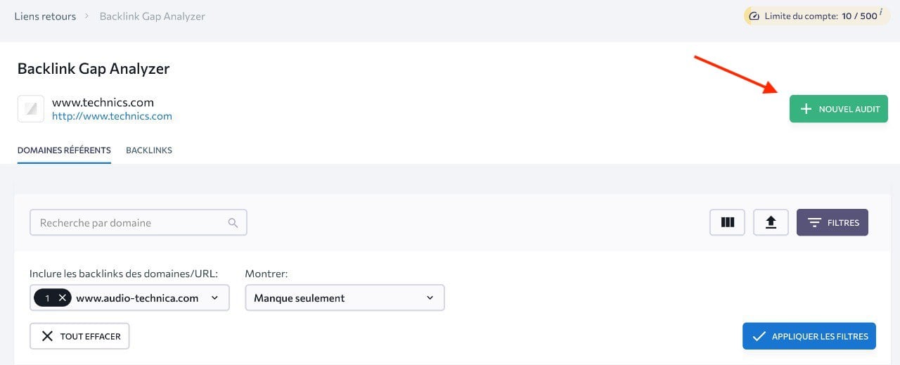 ツールは各ドメイン/URLごとに10,000件の被リンクを表示することができます。あるドメイン/URLで新規被リンク獲得の機会を探すには、次の手順で操作します。