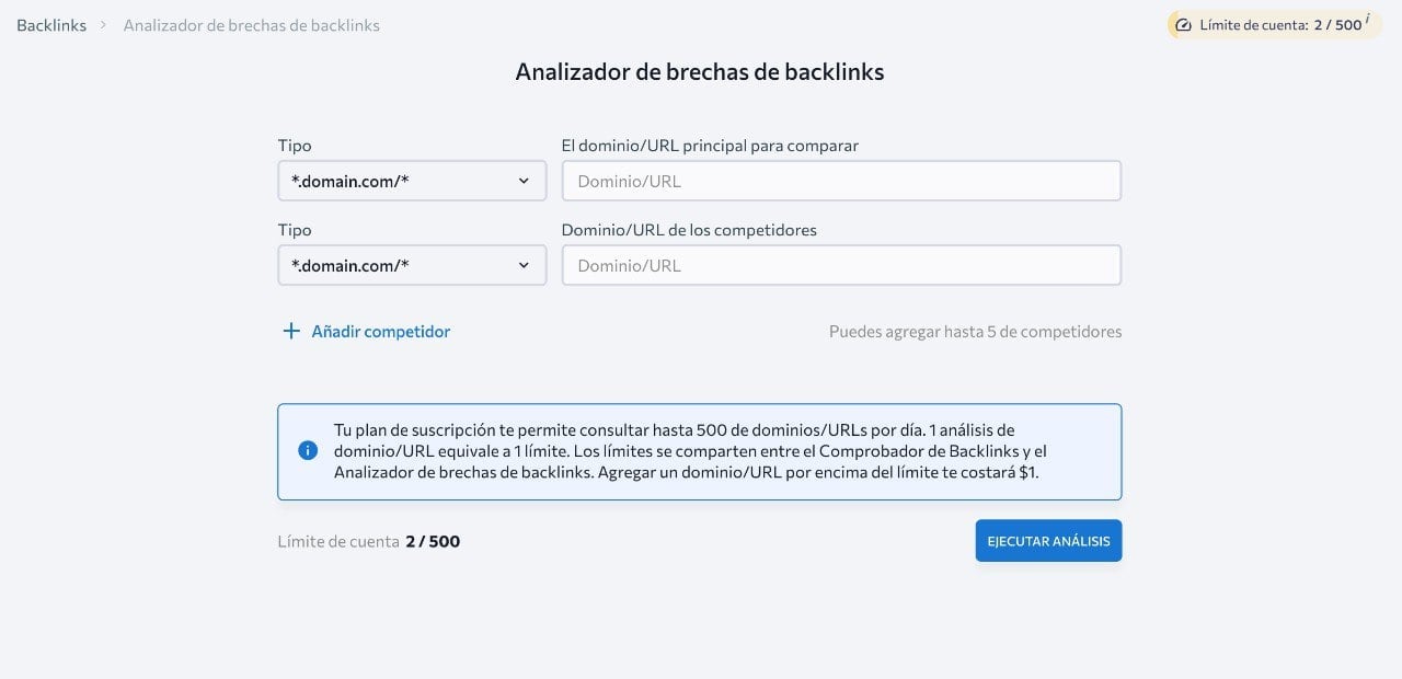 - 5件までの競合ドメイン、または比較対象のURLを入力します。