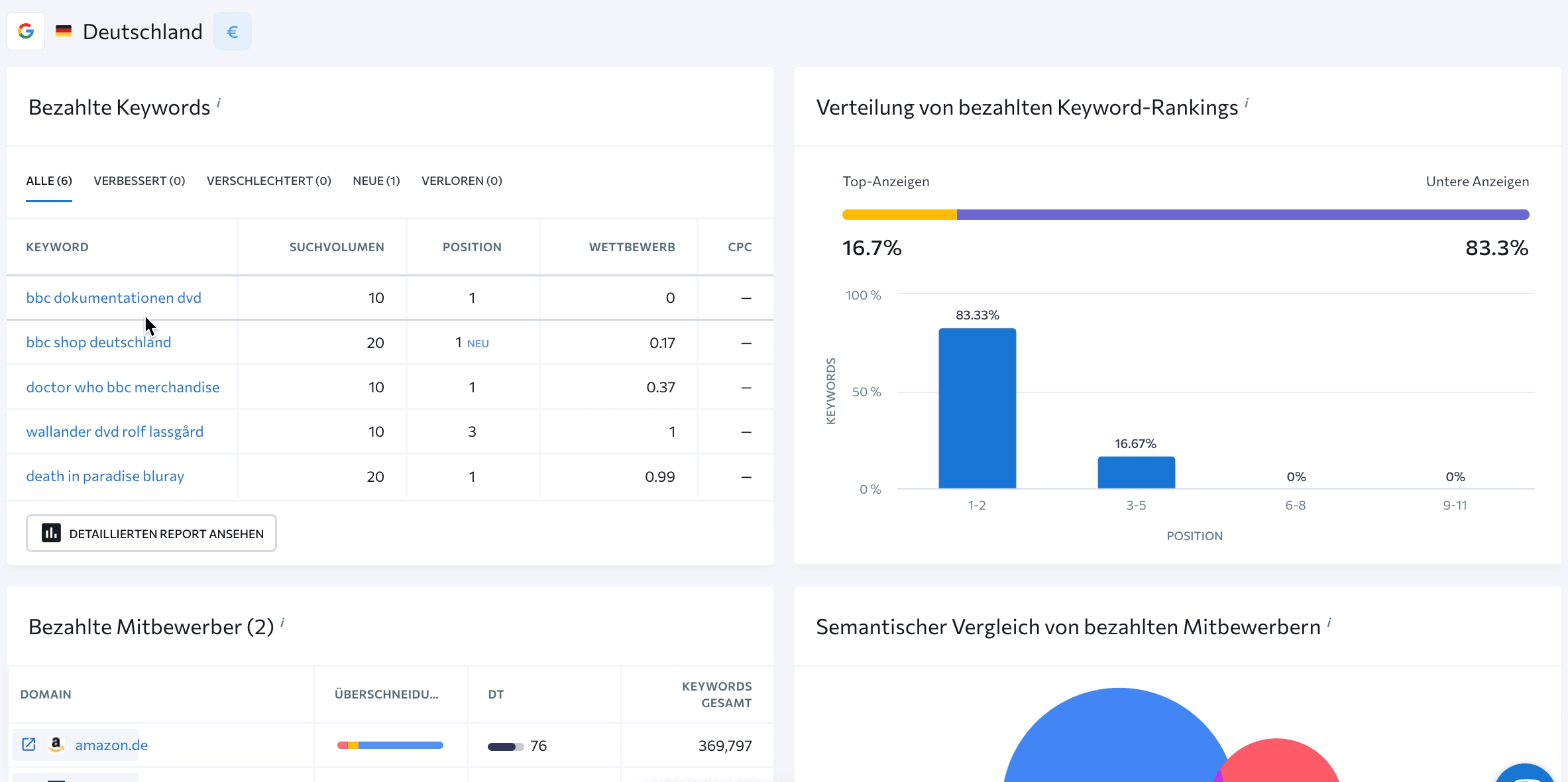 Еще ниже на странице представлены аналогичные графики и таблицы для анализа платного трафика. Дополнительно здесь доступен раздел с наиболее популярными рекламными объявлениями по ключевым словам.